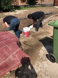 A fantastic new path and patio layed with cobblestone and Indian pave stone slabs underneath a thick bed of concrete for a perfect sub base. Another happy customer